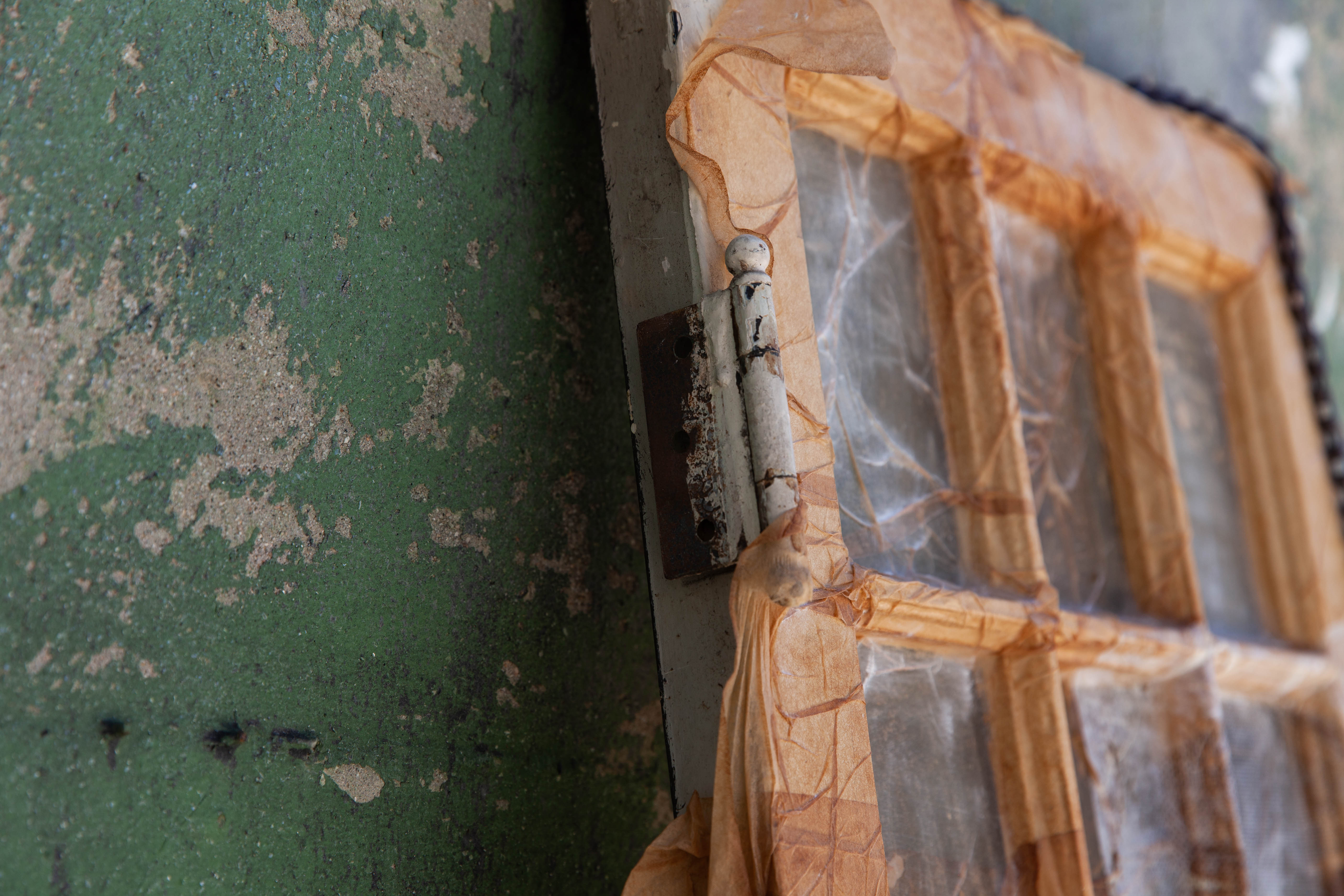 Rice paper, found object, cheesecloth, parchment paper, latex, plaster, vellum paper, graphite _ Approx. 50” x 20” x 8” _ 2025